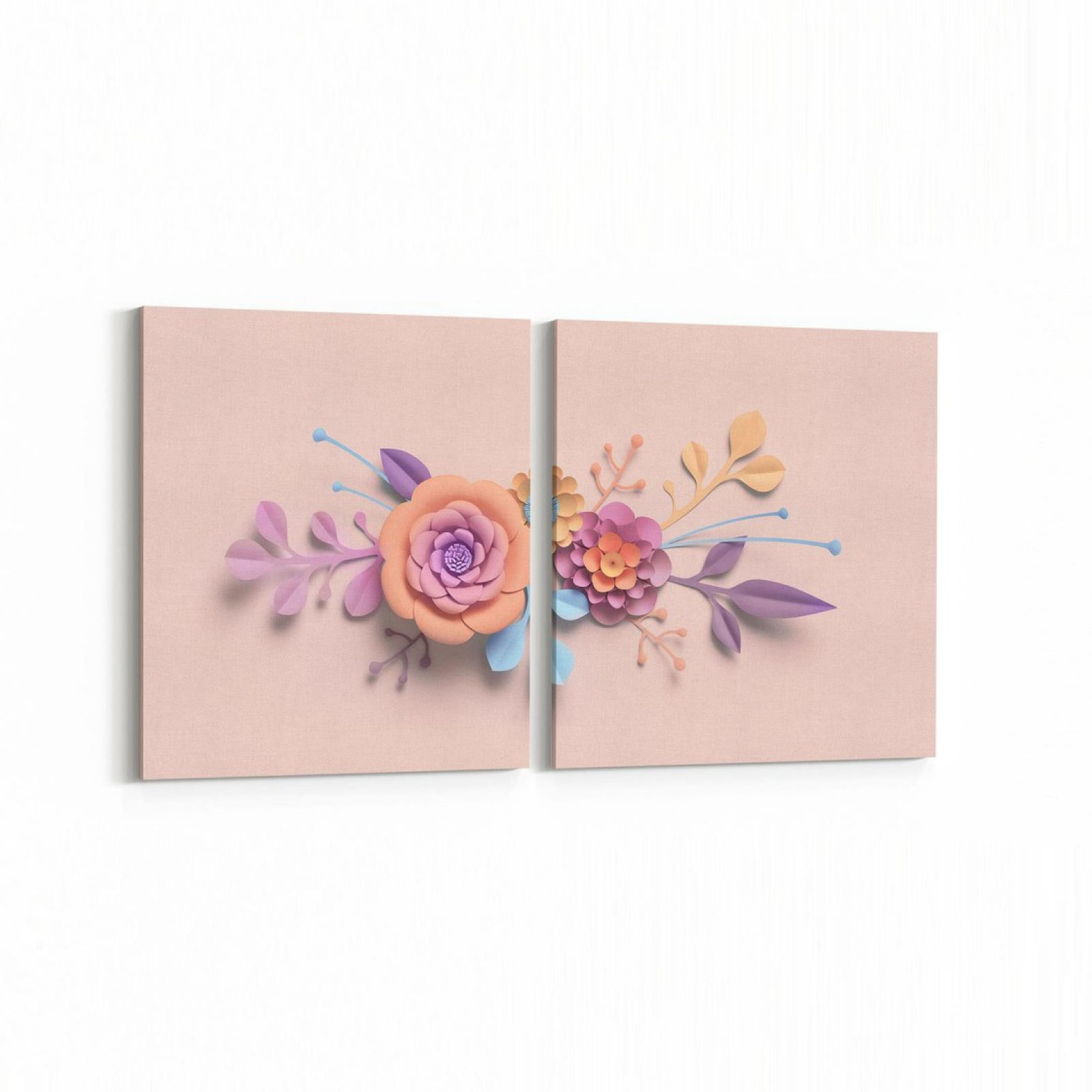 11549K2Y Çiçek Görseli Kare 2'li Yatay Kanvas Tablo